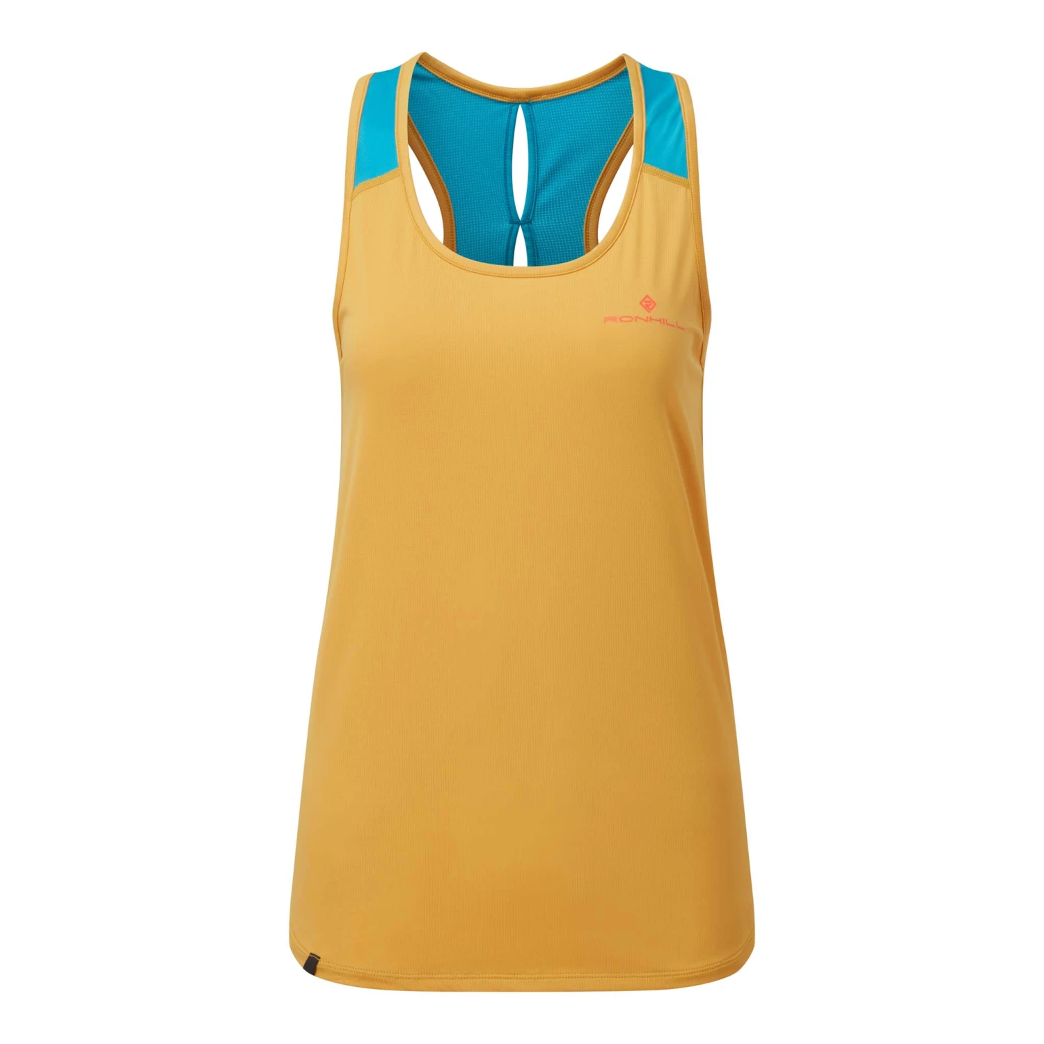 The eco-conscious Ronhill Tech Revive Racer Vest in the Dark Gold/Azure colourway is great for training or racing in warm or humid conditions. Streamlined and lightweight, this technical running vest won’t weigh you down when you’re pushing the pace. The racer back style gives you the ultimate freedom of movement and you’ll feel completely unrestricted when running.