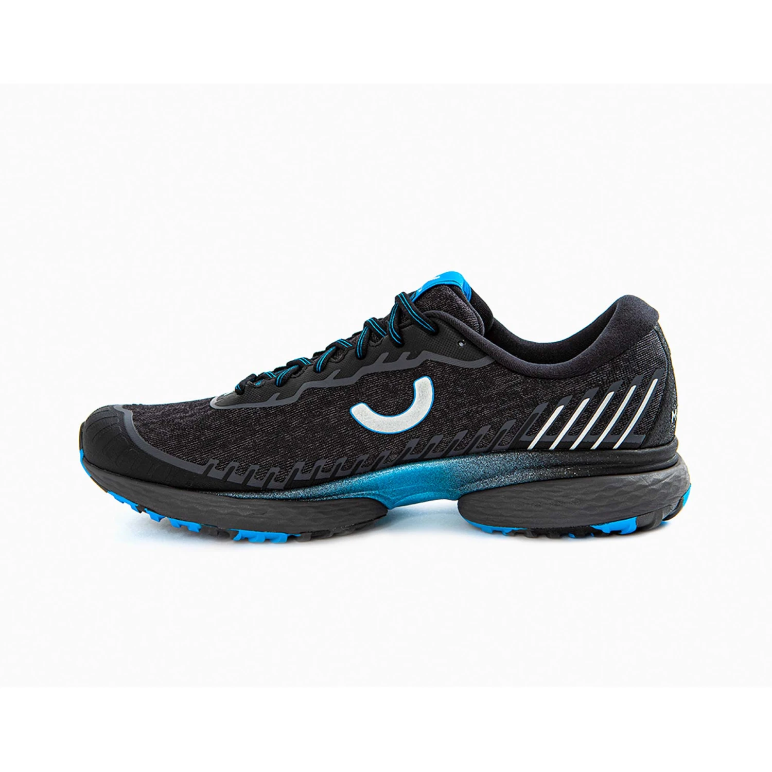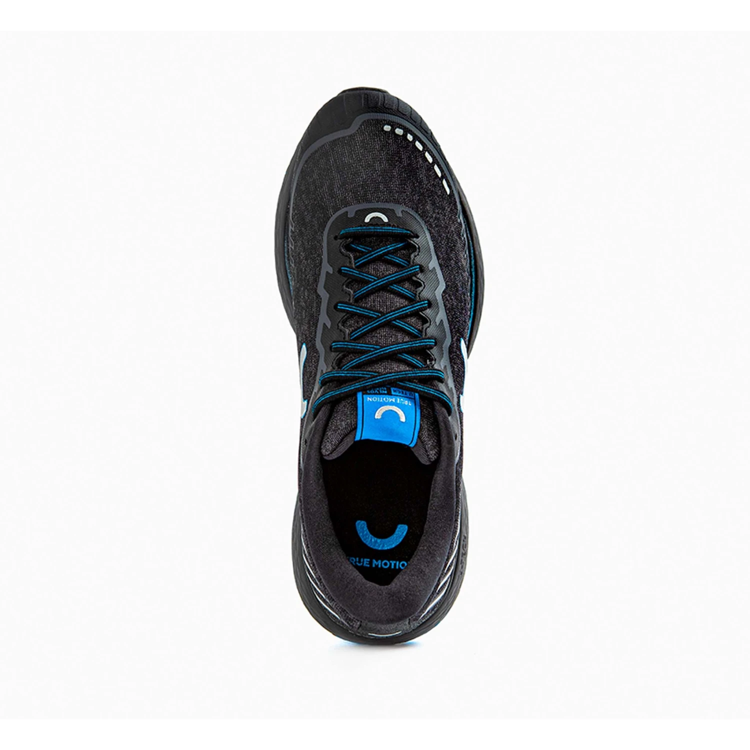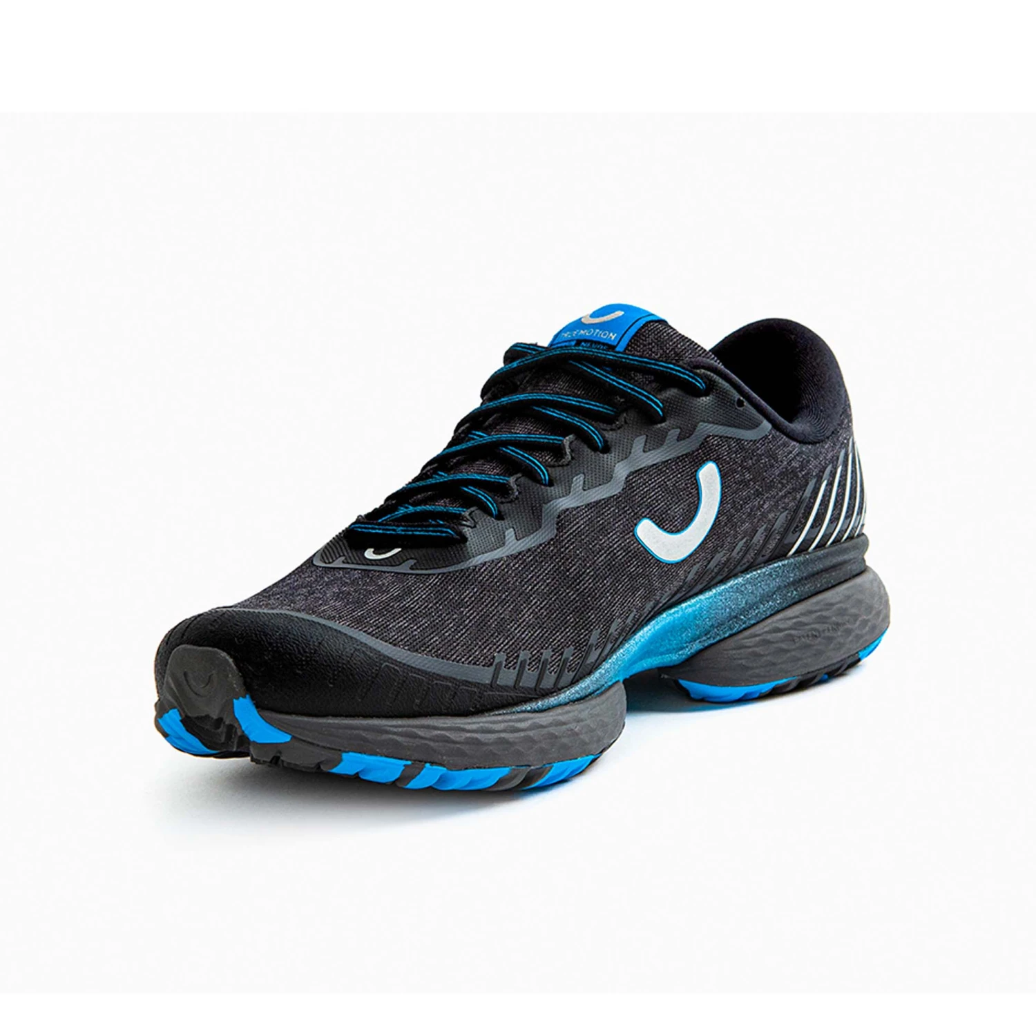 Advice for Road Runners: The True Motion Men’s U-Tech Nevos Elements Running Shoes in the Black/Dresden Blue/Blackened Pearl colourway are a weather-resistant version of True Motion’s signature model.